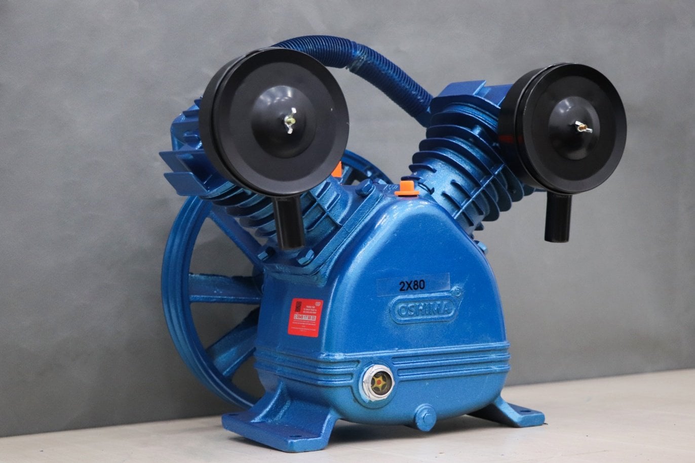 Đầu nén khí Oshima 80x2 thiết kế vừa gọn, trọng lượng tương đối dễ dàng cho việc di chuyển, bảo quản. Thiết kế kiểu dáng đẹp, hiện đại dễ bắt mắt người nhìn. Máy chiếm diện tích lắp đặt không lớn, tiện lợi khi tháo lắp các cụm chi tiết.