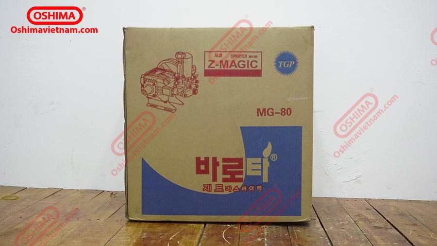 - Thân Đầu xịt MAGIC 80 5HP làm rất dày có dập nổi logo, puly làm dày cứng hơn, trọng lượng cả máy nặng hơn hàng các công ty khác nhiều
