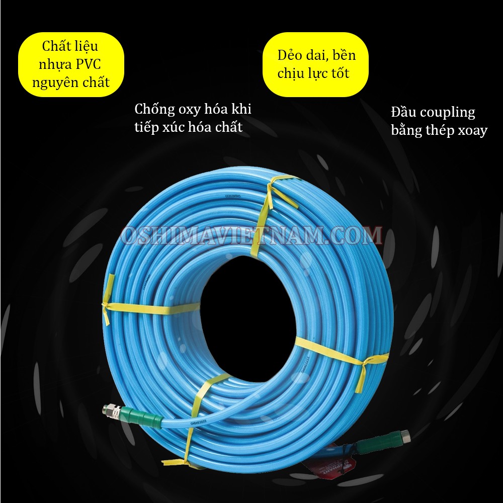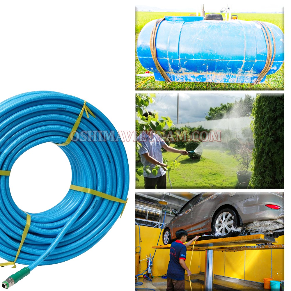 – Dây phun áp lực được làm từ chất liệu nhựa dẻo dai, bền, đàn hồi cao, chịu lực và dẫn áp tốt.