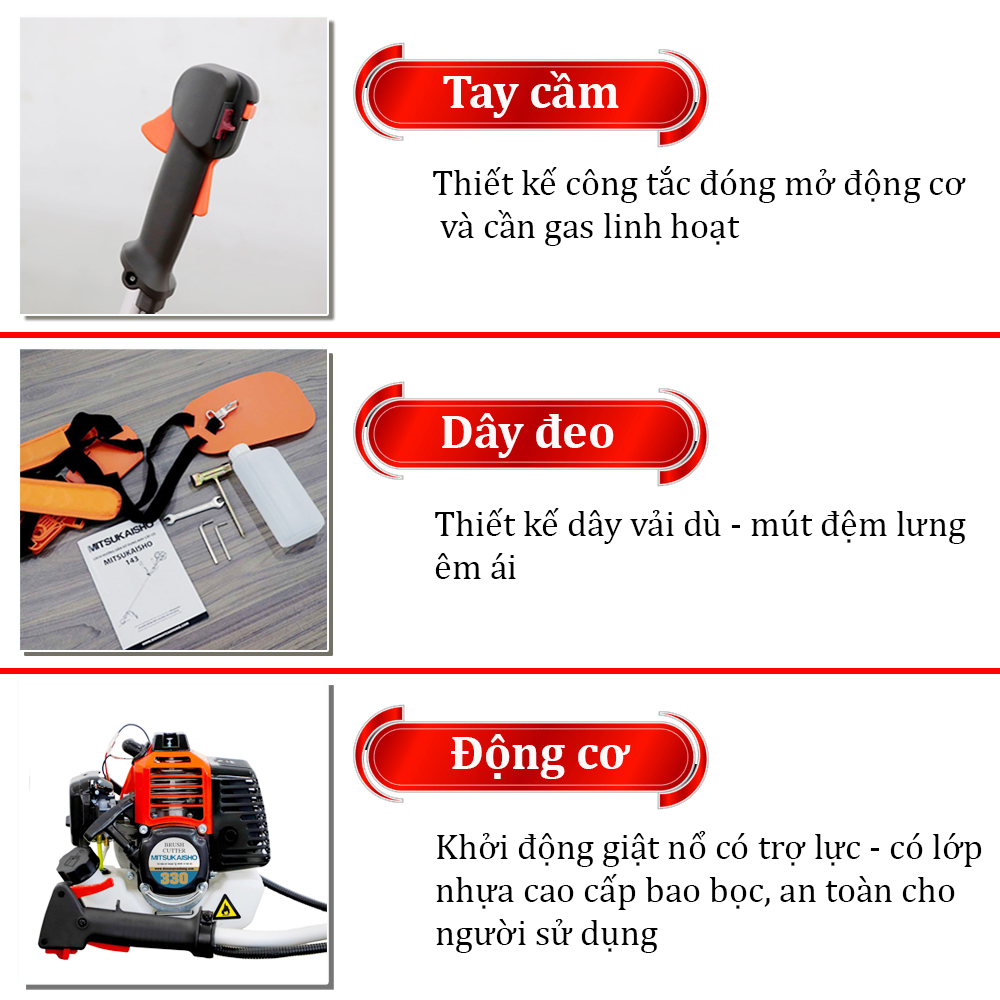 Phụ kiện Máy cắt cỏ Mitsukaisho 330 2 thì dể dàng tháo lắp linh hoạt trong công việc sử dụng