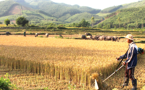 Với kiểu lưỡi cắt hình răng cửa giúp máy gặt lúa không bị rối, không bị rụng nhiều, lại rơi thẳng nhờ điểm tựa của lưỡi cắt hình tròn