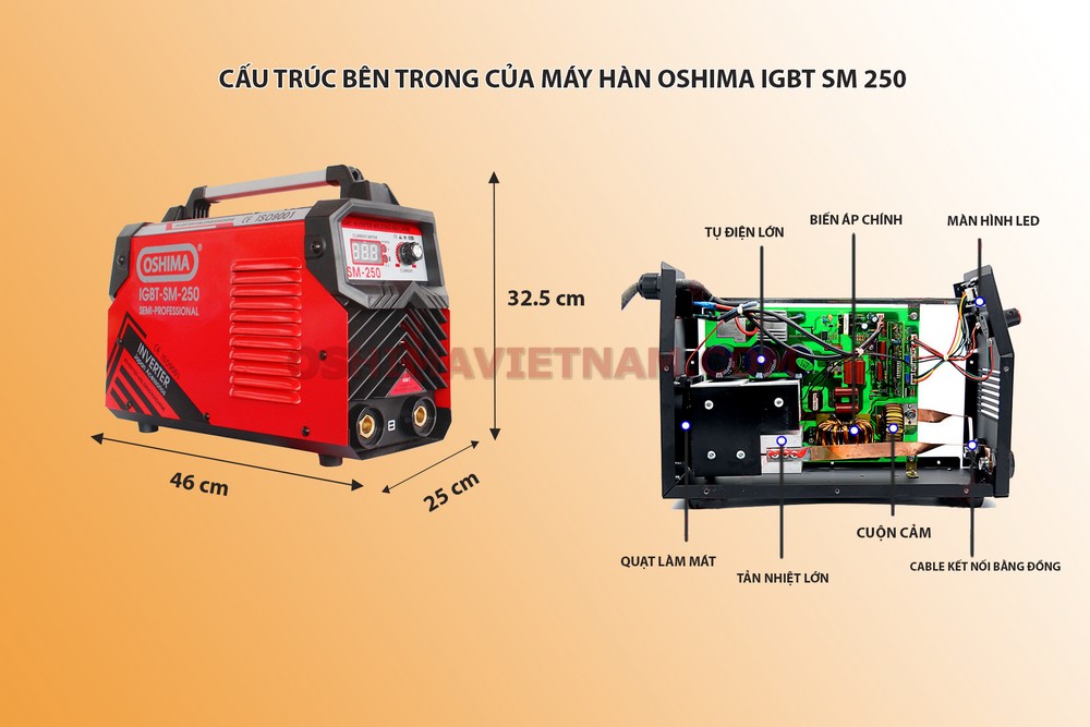 Cấu tạo bên trong của máy hàn Oshima IGBT SM 250