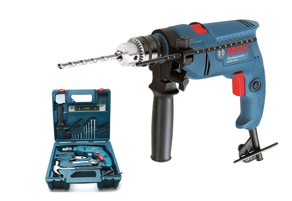 Máy khoan động lực Bosch GSB 550 có thiết kế nhỏ gọn, mô tơ mạnh mẽ với công suất đầu vào 550W đáp ứng tối đa và linh hoạt nhiều yêu cầu công việc trên nhiều bề mặt chất liệu khác nhau. Phần cấu tạo của máy khoan cũng được nhà sản xuất thêm vào nhiều chi tiết cải tiến hữu dụng, giúp người dùng thao tác được an toàn, dễ dàng và nhanh chóng.Máy khoan động lực Boschrất cần thiết cho các thợ sửa chữa chuyên nghiệp và phù hợp với cả các hộ gia đình.