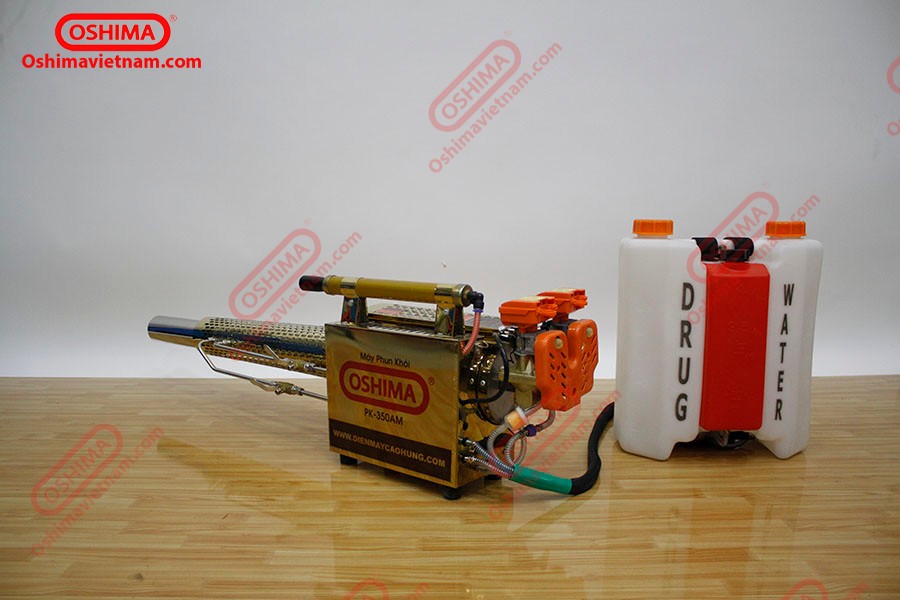 Máy phun khói Oshima 350 có động cơ mạnh giúp tiết kiệm thời gian phun thuốc
