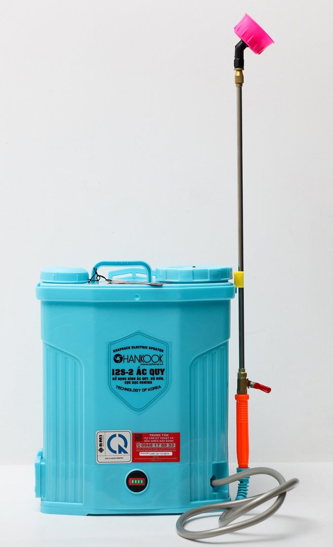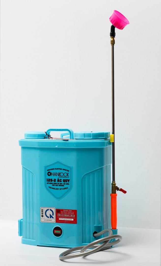 Máy phun thuốc trừ sâu, côn trùng điện HANKOOK 12S-ắc quy Xanh Bình ắc quy 12V8Ah