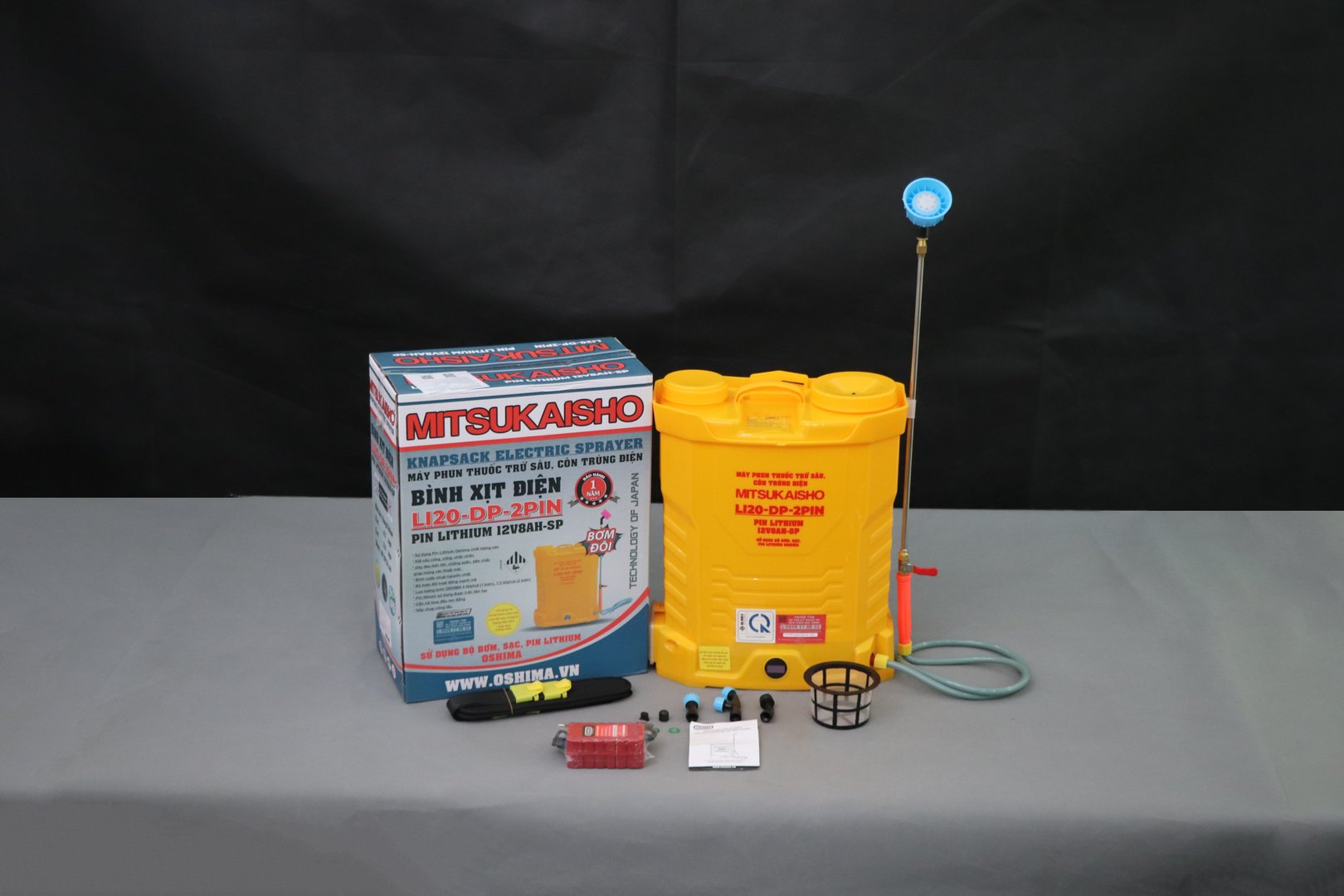 | Sản phẩm | Máy phun thuốc trừ sâu, côn trùng điện MITSUKAISHO Li20-DP-2pin Vàng Pin lithium 12V8Ah-SP |