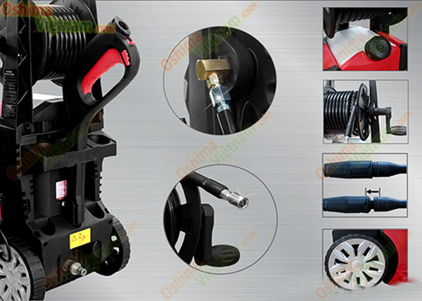 Máy rửa xe Oshima được làm bằng chất liệu cao cấp, bền và chống gỉ sét, chống va đập giúp máy có độ bền cao.